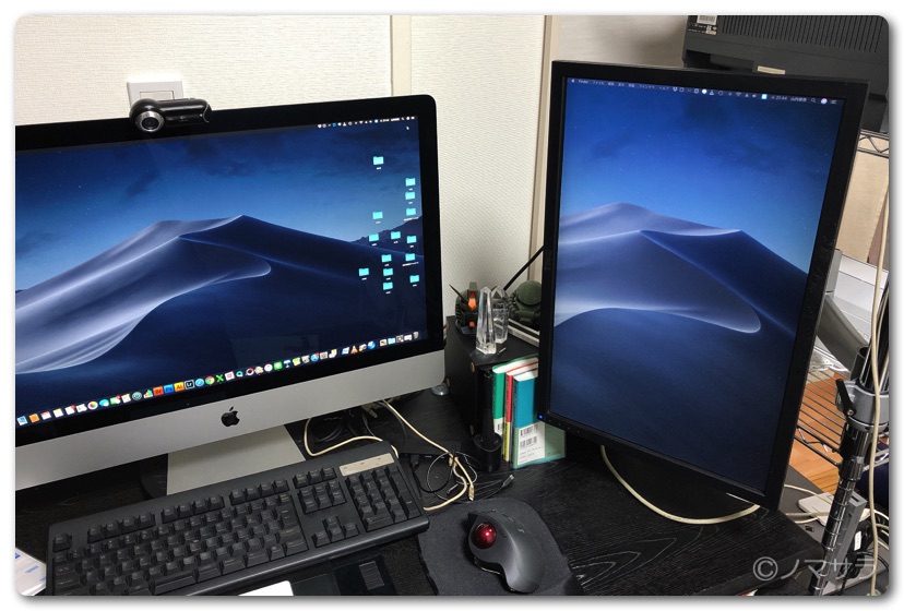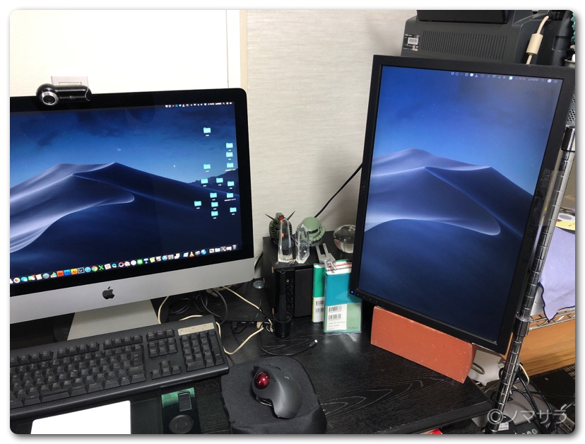 普段はリビングでMacbookProを使ってブログ書いたりしていますが、本気で何か作業する時や映画を観るときは書斎にあるiMac27インチを使います。以前仕事で使っていた自腹の22インチモニターは事務仕事ではなくなり使わなくなったので自宅で使用しています。