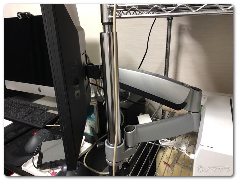 ガス式4軸なので自由自在に位置を変えることができます。モニターとの固定軸は360度回転するので縦横の切り替えも問題ありません。