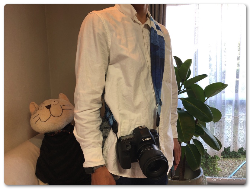 サクラスリングは幅が広くカメラの重さが分散するため肩にかけても通常のストラップよりかなり軽く感じます。一眼レフカメラが重たくて持ち歩かなくなった方はこのサクラスリングを使えば解消するような気がします。