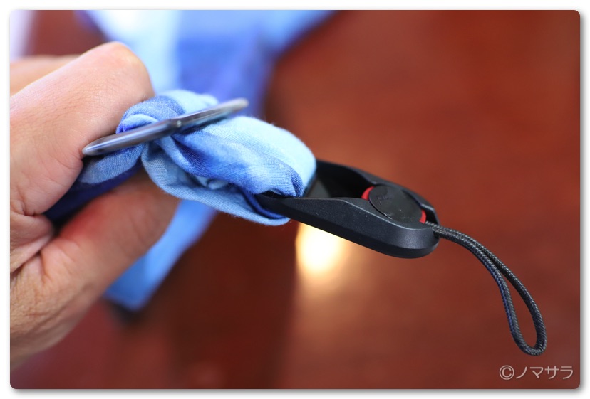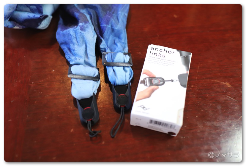 ネットでも販売されるとのことなので発売日を楽しみに待っていました。価格は通常のサクラスリングより少々高いのですが、素材も特別なものを使っており見合った価値があります。注文して自宅に届きましたが、サクラスリングはそのままではキヤノンのカメラに取り付けることはできず、何らかのアタッチメントが必要になります。サクラスリングからもアタッチメントが出ておりそれを購入しようと思っていた矢先、サクラスリングユーザーの方がアタッチメントをアンカーリンクス仕様に加工したというブログを見ました。先の縫ってある箇所を解いてアタッチメントを取り付けるとのこと。これならサクラスリングほか、ストラップを簡単に付け替えることができます。