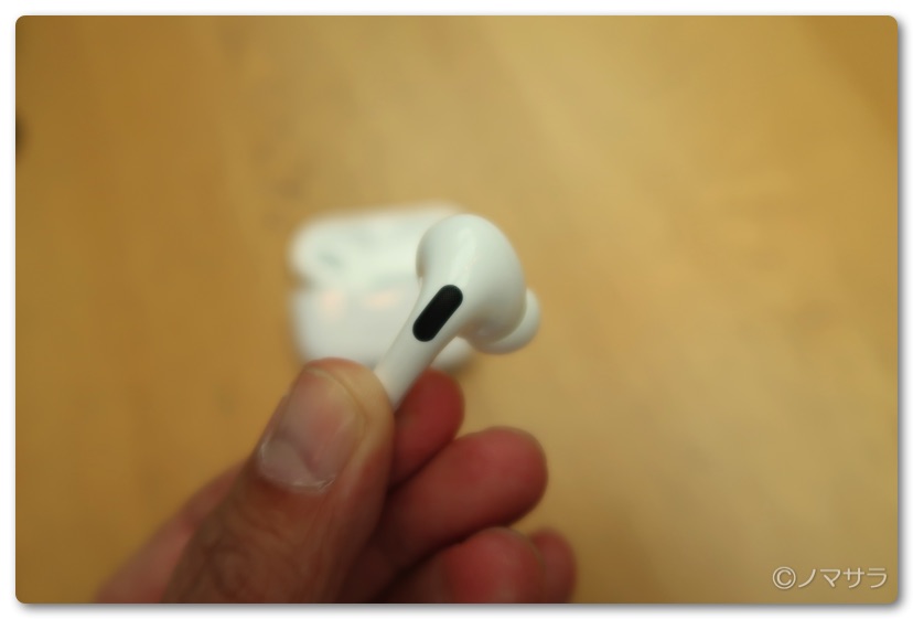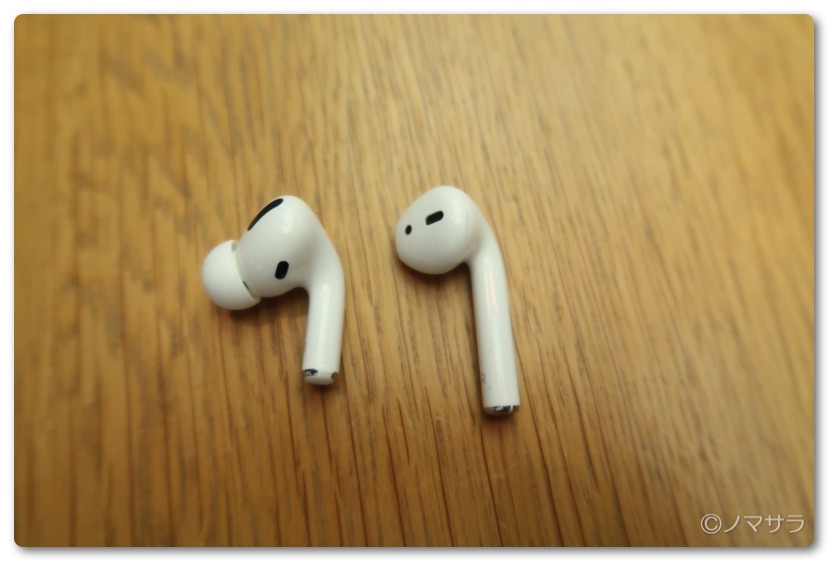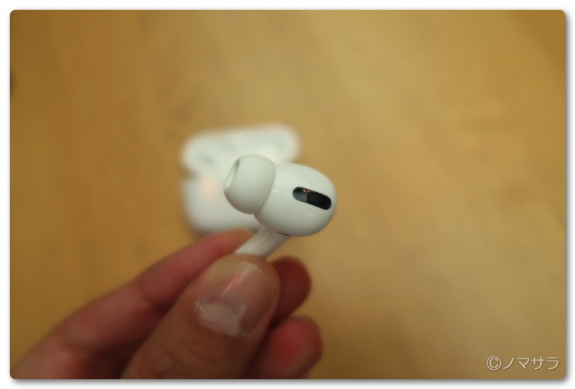 インナーイヤータイプなので耳にはめた感覚は適度なフィット感がありAirPodsより安心感があります。AirPodsはブラブラする感じですがAirPods Proはピタッと耳にはまります。男性下着に例えるならAirPodsはトランクス、AirPods Proはブリーフといった感じでしょうか。男性ならわかってくれるはず(笑)