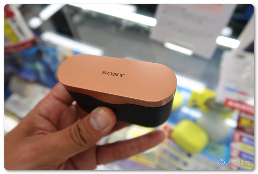 ソニーのケースはゼンハイザーと比べるとやや小ぶりですがAirpodsよりもかなり大きめ。厚みもそこそこあります。余談になりますがこのソニーのイヤホン商品名が覚えられません…。マーケティングとして失敗してるような気がします。その点やはりAppleは誰でも一回聞けば覚えられる商品名になっています。