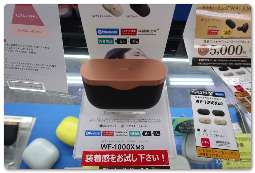 AirPods Proを試聴したついでにヨドバシカメラに立ち寄り、ソニーのワイヤレスノイズキャンセリングイヤホン「WF-1000XM3」とゼンハイザーのワイヤレスイヤホン「MOMEMTUM True Wireless」を試聴してきました。ゼンハイザーはノイズキャンセル機能は搭載していませんが、音質が高価格帯ワイヤレスイヤホンの最高峰と名高いので試聴してきました。