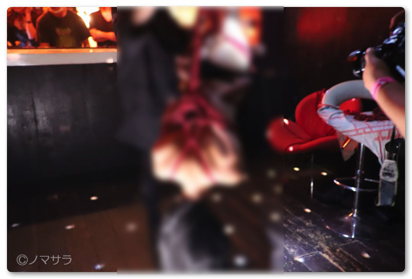 何気なく一番近かった斜め向かいにある「about」に入ったら、ほぼ全裸のお姉さんが天井から吊るされていました。どうやらSMショーのよう。初めて見るのでドキマキしましたがエロというよりはアートの領域でとても楽しめました。観客は半分ぐらいは女性の方々でみなさん写真や動画を撮ったりしながら真剣な表情で見入っておられました。