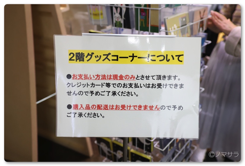 そして物販コーナーは未だに現金のみ。これだけキャッシュレス推進と言われているのにPayPayさえ導入されていません。今回は高額な商品はありませんが、以前は10万円以上の版画などを販売しており、キャッシュカードが使えたら売上は一気に増えるはず。民間が運営していたらこんなことにはならないのでしょうが残念な限り。