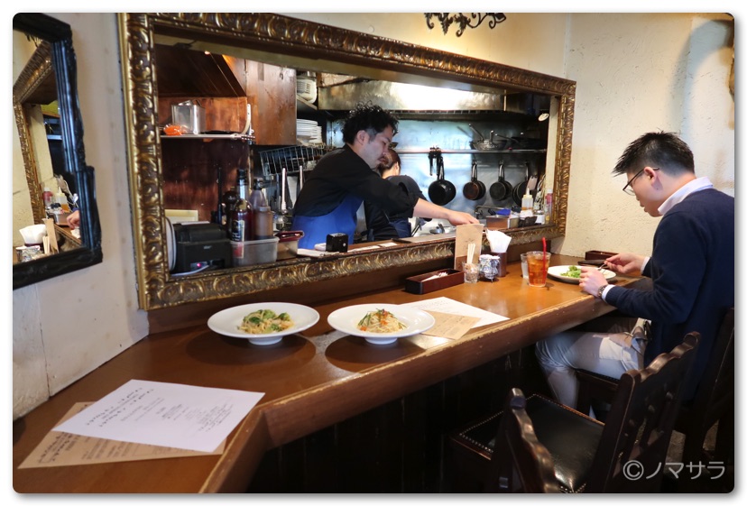 前菜を楽しんでいたら3人連れの方が来店されワタクシはテーブル席に座っていたのでスタッフの方から「カウンター席へ移動していただいてもいいですか?」と声をかけられたので快く移動することにしました。