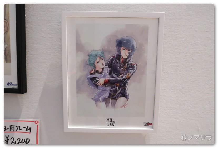 原画の中で一番気に入っていたカミーユとフォウ・ムラサメの8つ切りサイズのポスターが販売されていたのでこれは迷わず購入。嵩も取らないですし。