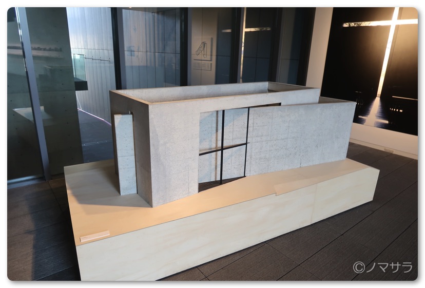 安藤忠雄氏の建築の概要を知ることができる展示室があり、模型や写真パネルなどが飾ってあります。以前、東京の国立新美術館で開催していた安藤忠雄展に展示してあったオブジェなどもあり、安藤忠雄ファンならこれだけでも楽しめます。
