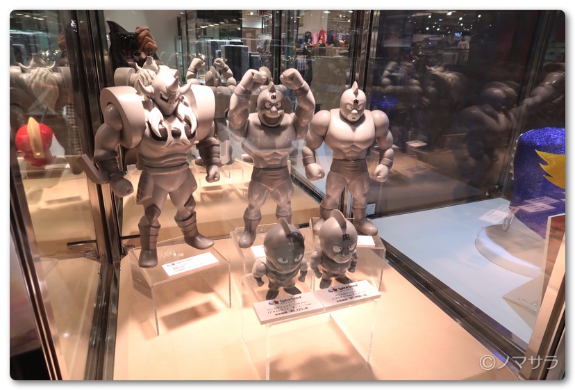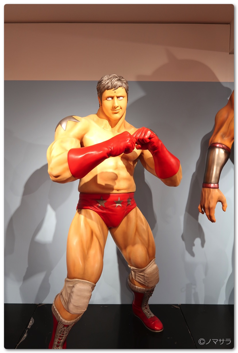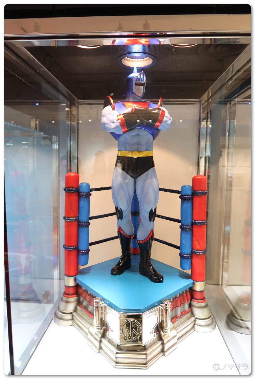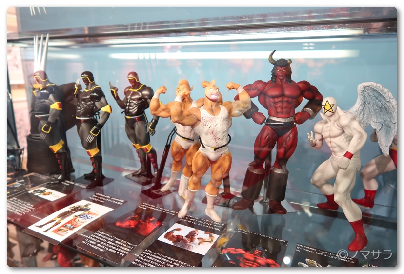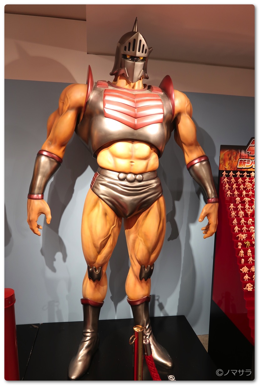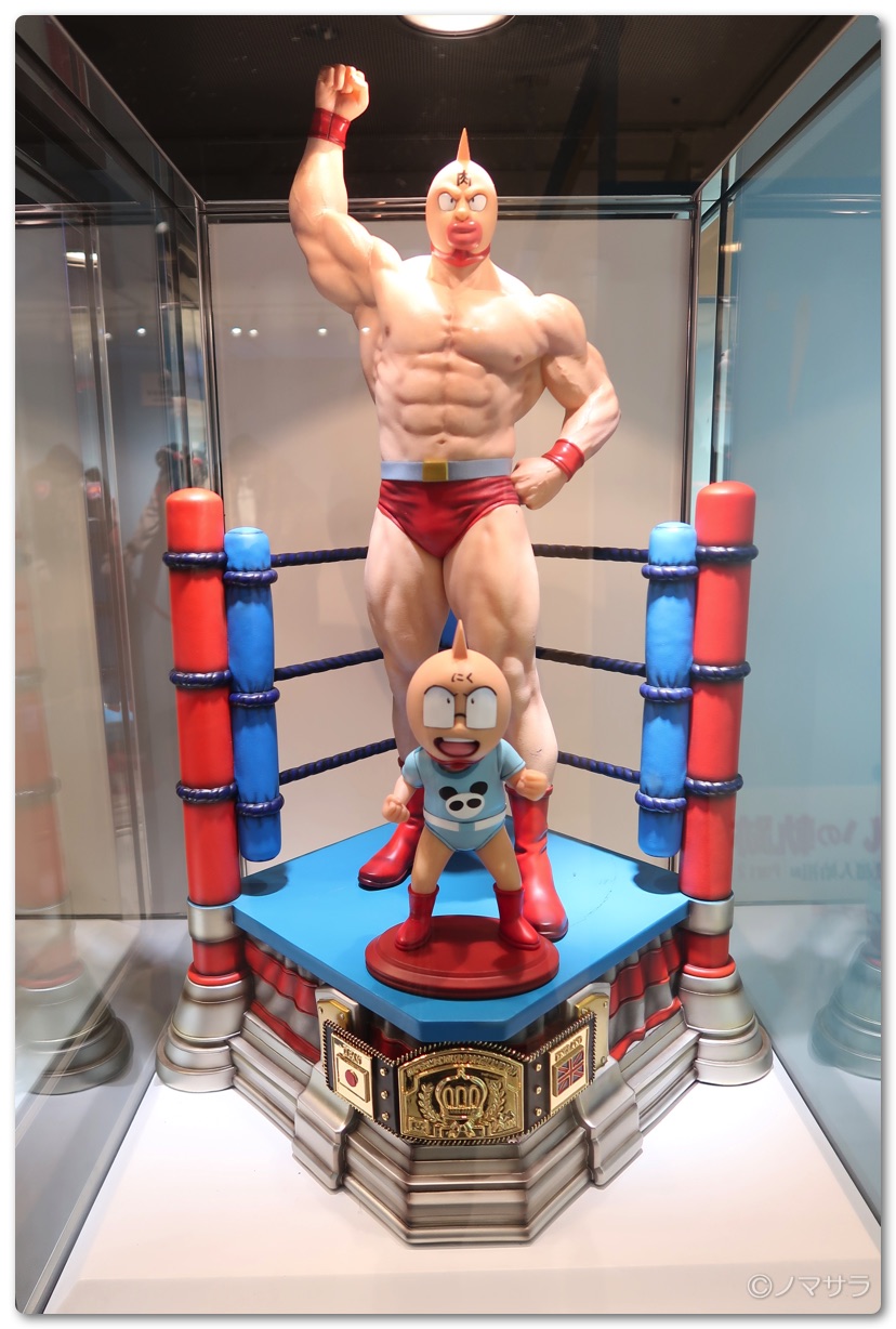 後半では等身大のフィギュアやロビンマスクの実物大ヘルメットなど様々なキン肉マングッズが並んでいました。