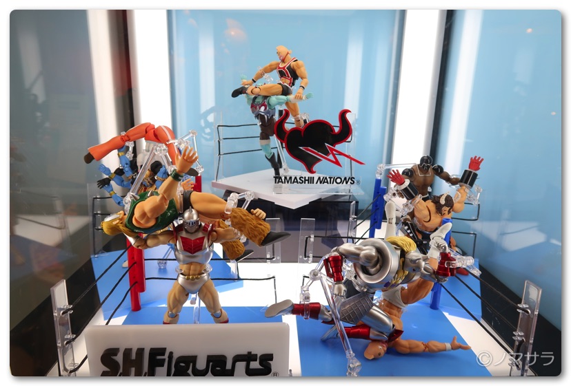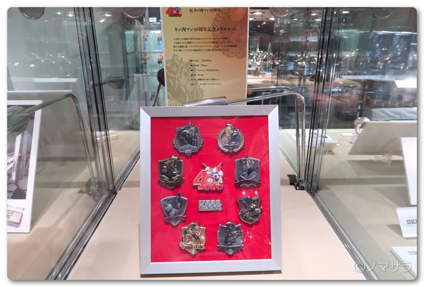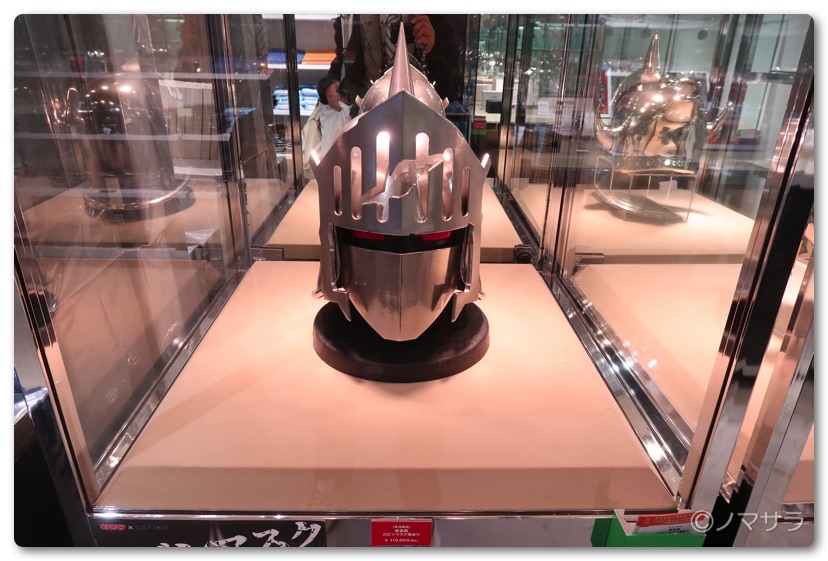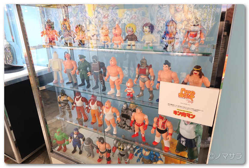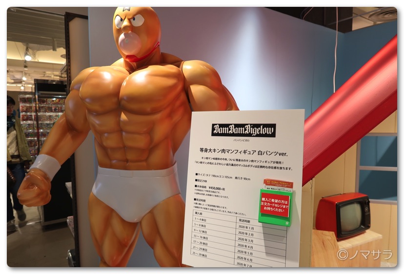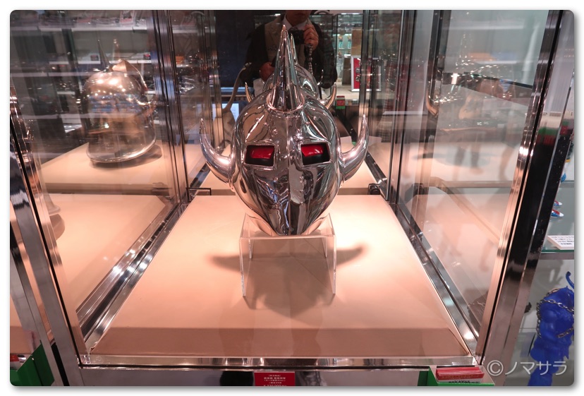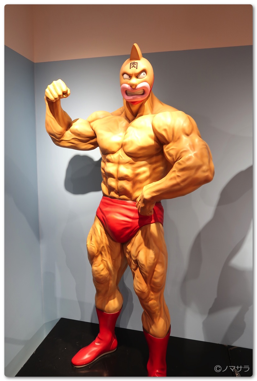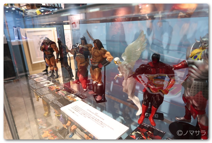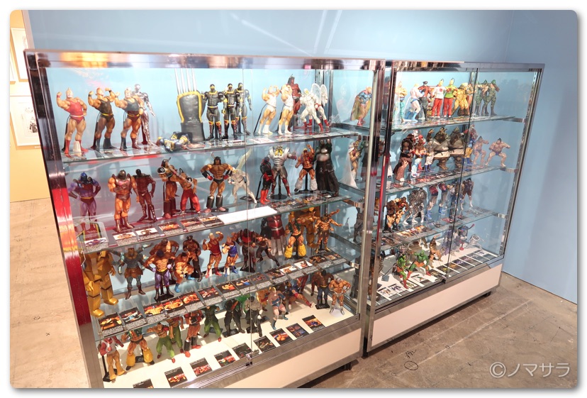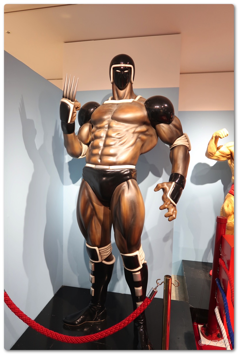 後半では等身大のフィギュアやロビンマスクの実物大ヘルメットなど様々なキン肉マングッズが並んでいました。