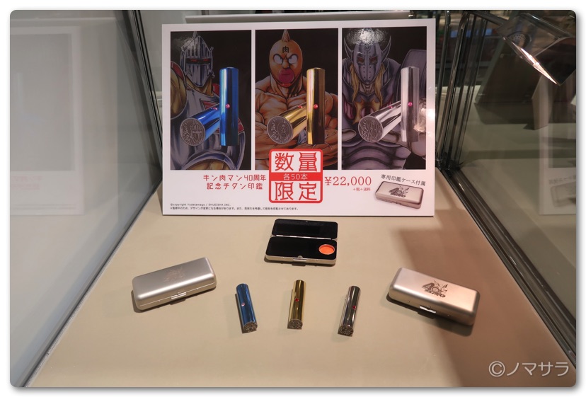 会場を出たところでは腕時計、ライター、印鑑、フィギュアなどの各種グッズが販売されていました。結構なお値段のものもチラホラ。グッズに関しては西館8会の特設会場でも販売されております。