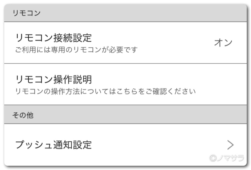 専用リモコンはアプリの設定の項目から登録します。一度認識すれば後はアプリを立ち上げれば自動で接続されます。