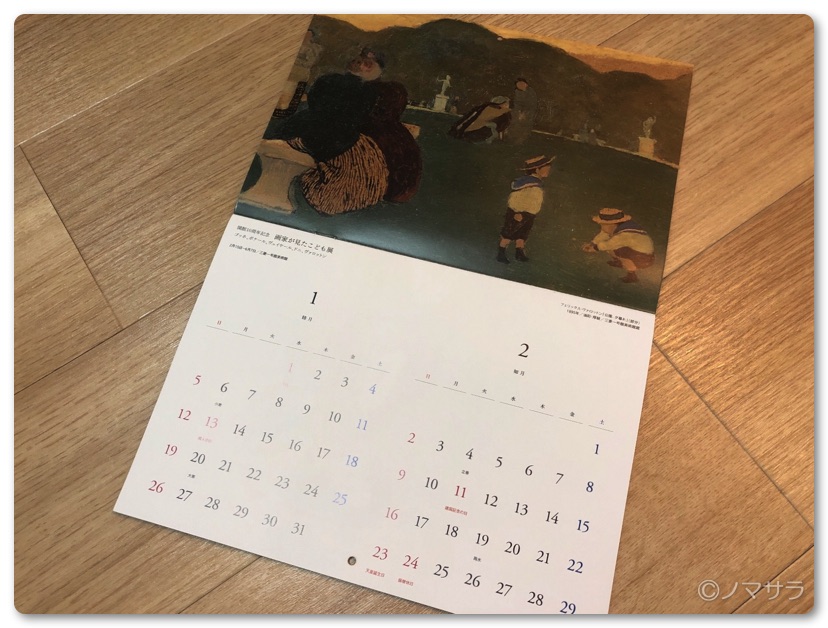 2つ目は名画カレンダー。見開きでも手頃なサイズなのですがカレンダーにこだわりのある方には不要かもしれません。