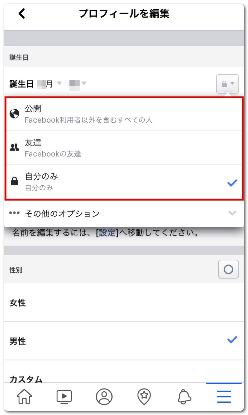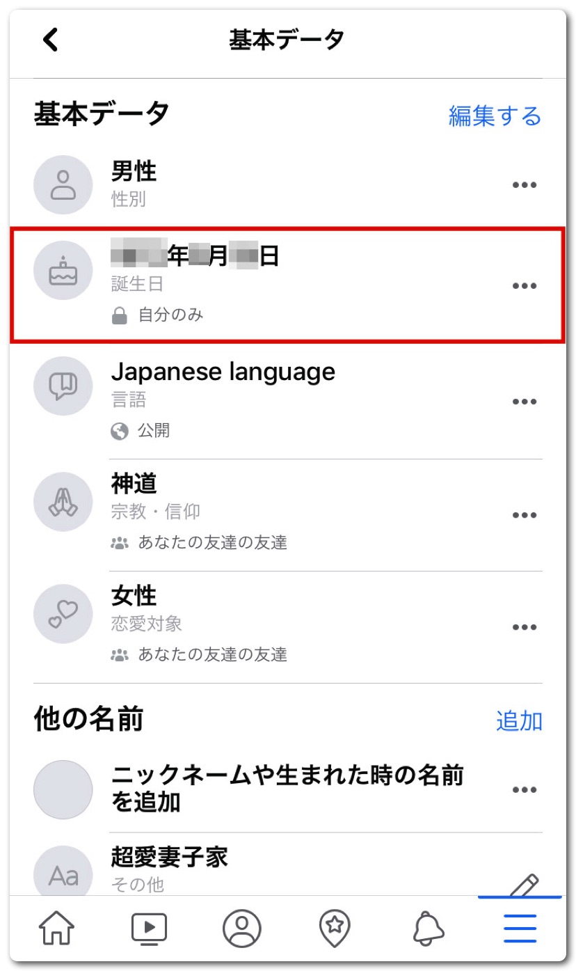「誕生日」欄の「…」をタップ