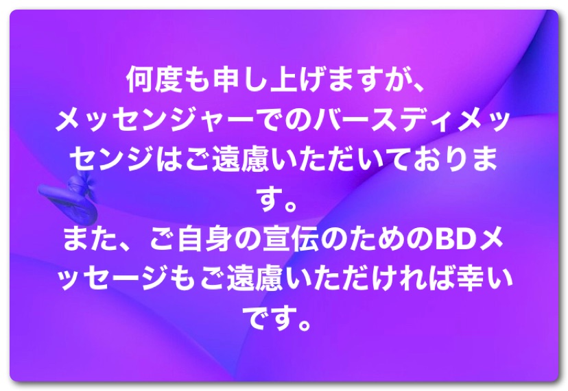 なお、ワタクシからFacebookの誕生日情報を見てお誕生日にメッセージすることはまずありません。投稿欄に誕生日のお祝いの様子などが掲載されていたらコメントすることは時々あります。決して冷たいわけではなくお互いに貴重な時間を奪わないように気を遣っています。