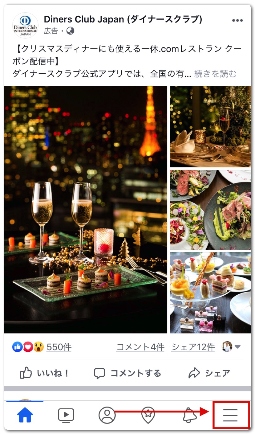 右下の三本ラインのアイコンをタップ