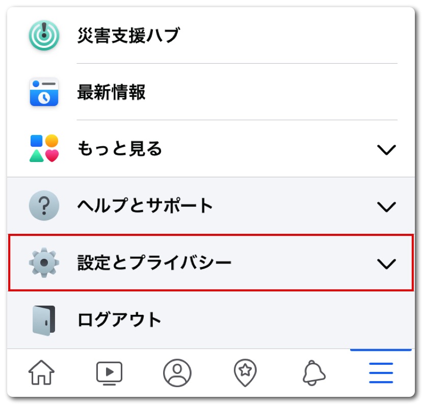 下にスクロールして「設定とプライバシー」の「設定」をタップ