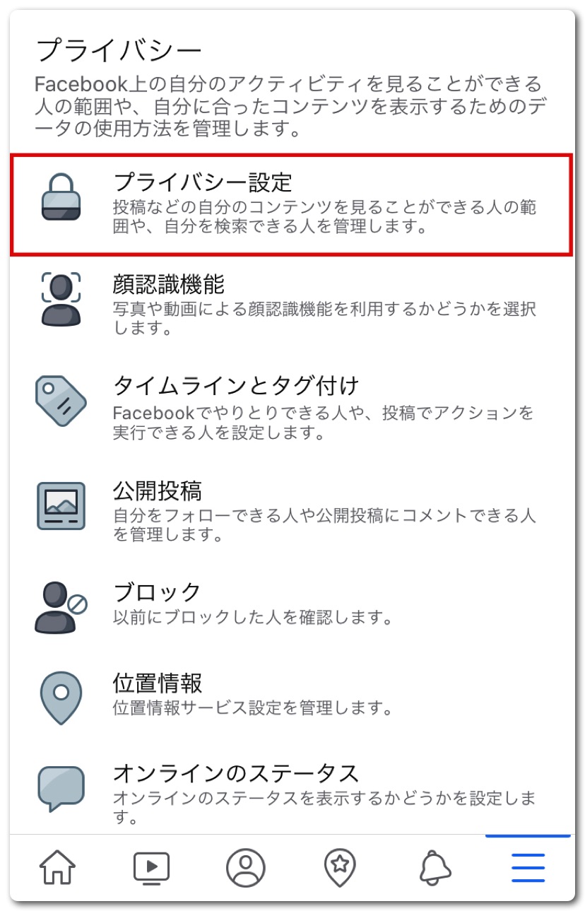 下にスクロールして「プライバシー」の「プライバシー設定」をタップ