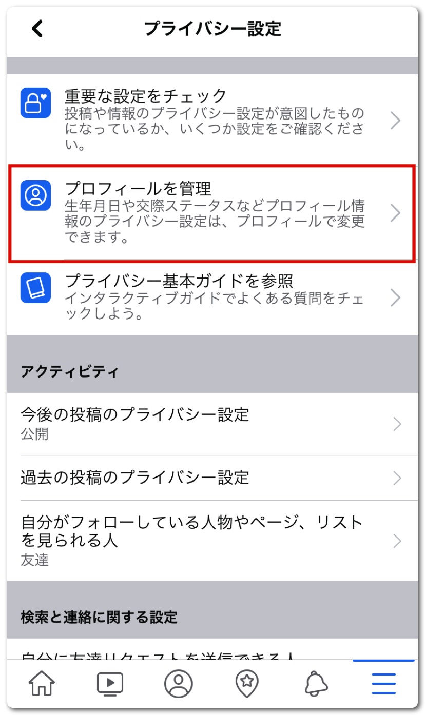 「プロフィールを管理」をタップ