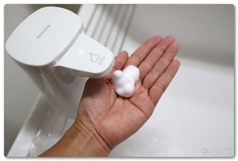 手をかざすだけで自動で泡タイプのハンドソープがニョロニョロと出てきます。それまではポンプ式のものを使っておりましたが一切手を触れないので衛生的で超絶便利になりました。