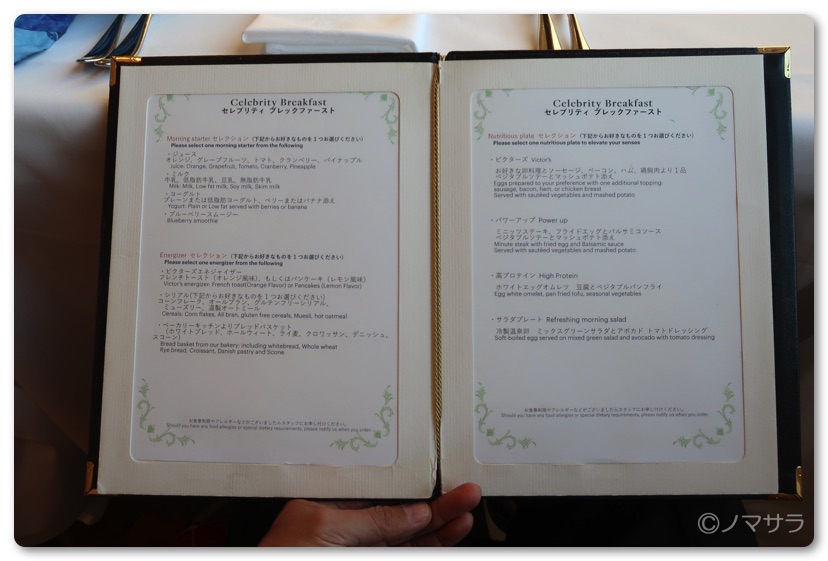 その後、朝食へ。朝食サービスは以下の4つから選択可能。