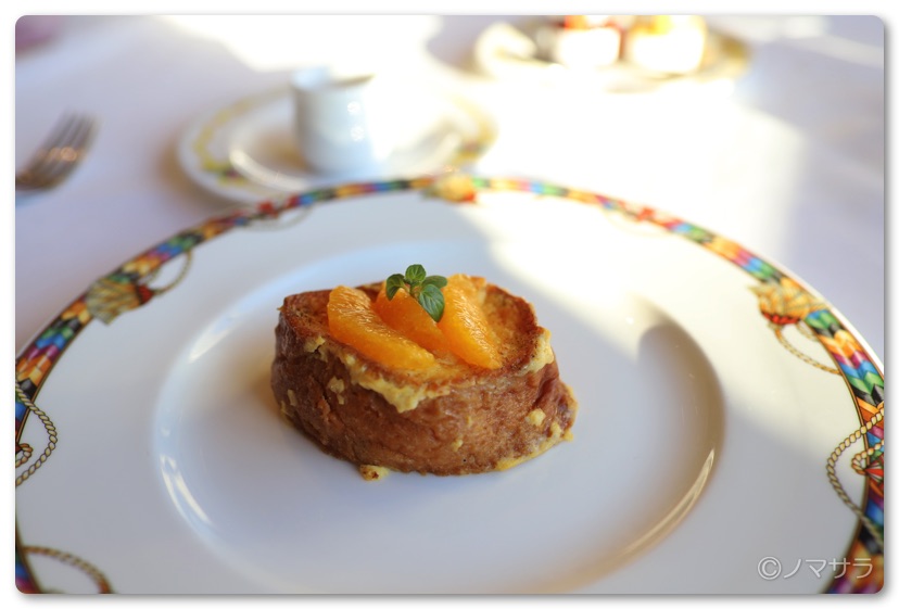 オレンジが乗ったフレンチトーストは今までの人生の中でも一番美味しいフレンチトーストとなりました。そのままでも美味しいし、メープルシロップをかけて味変させても美味しい!いやはや、フレンチトーストがこんなに美味しいとは…。旨い、旨いと唸りながらいただきました。
