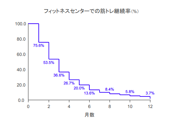 ジムに通って専用のマシンでトレーニングすると効率よく筋肉をつけることができるのですが、毎日通うのはかなりハードルが高くまず続きません。自宅のすぐ隣近所にジムがあるという立地条件以外は余程意思が強くない限り毎日続けるのは至難の業。1年後に継続していてるのは3%強しかおられません。