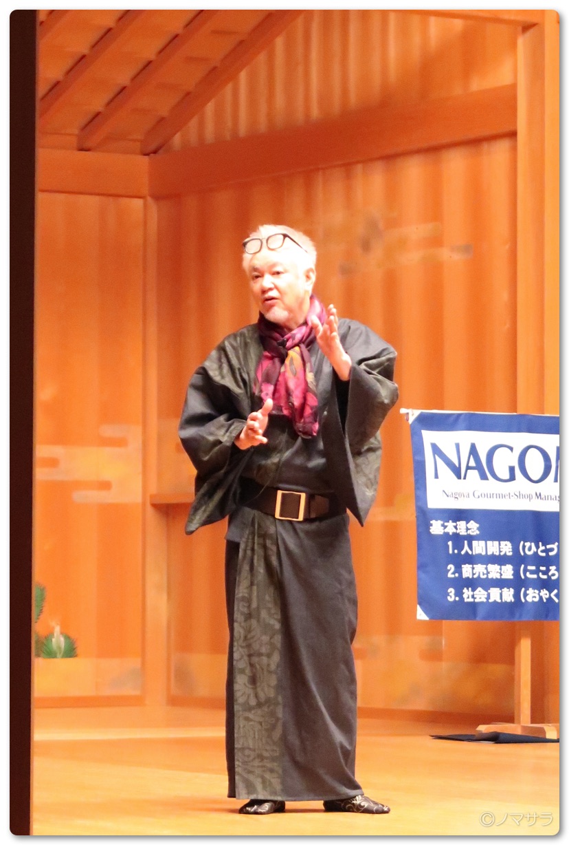 先日、居酒屋奥志摩代表の中村文也さんが名古屋能楽堂で講演されました。中村文也さんの講演は今まで何度も聴いていますが毎回学びになることがたくさんあります。今回は獅子舞で登場し、カルロス・ゴーンの時事ネタで笑いを取ったあと、1時間半淀みなくお話をされました。
