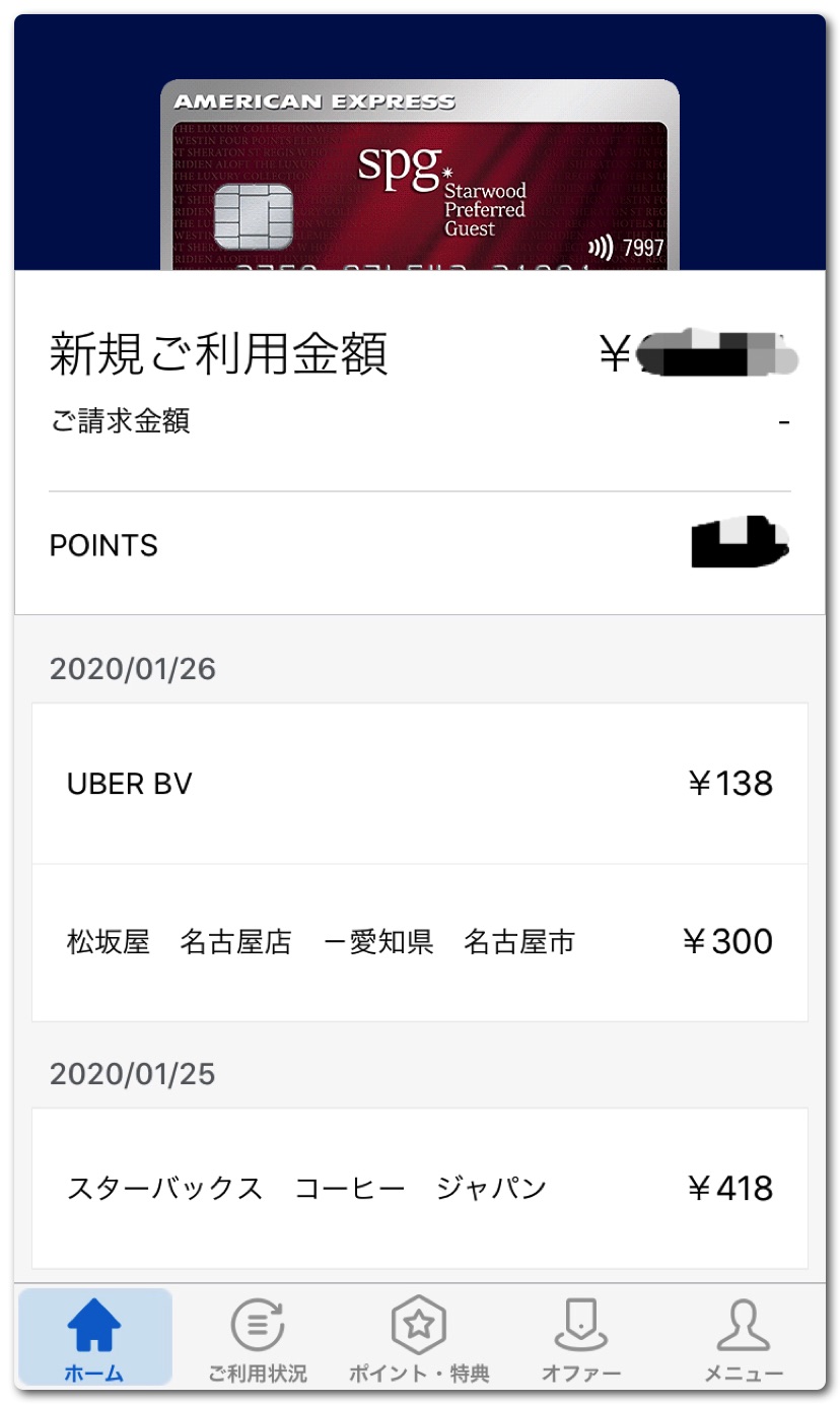 アメックスSPGの宿泊予約ではMariotto BONVOYというアプリを使いますが、その他にAMEXの専用アプリもあります。こちらはアメックスカードの様々な情報などがひと目でわかります。先日アップデートされてアプリが生まれ変わり、使い勝手が大幅に向上しました。