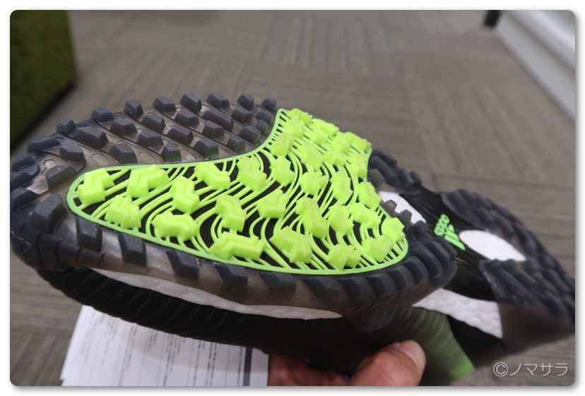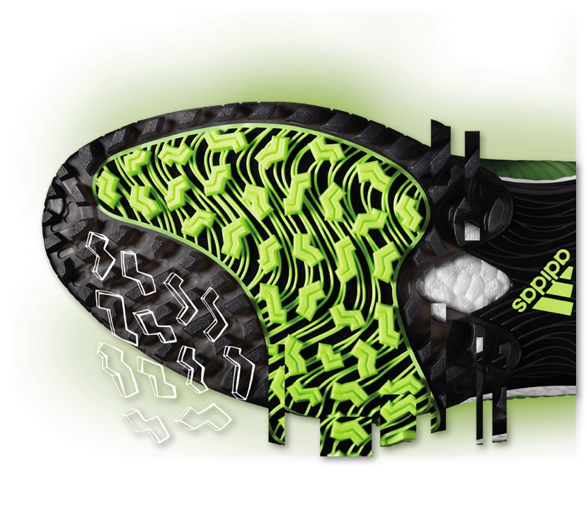 ソールからつながるコントロールラップによりパワーを逃がさない。驚異的なパワーと快適性を生みだすBOOST™クッション。