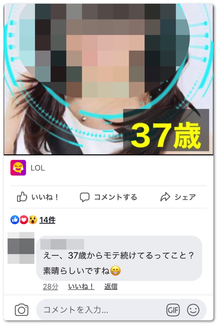 この投稿に対して「えー、37歳からモテ続けてるってこと?素晴らしいですね」というコメントが…。見てるだけで恥かしい…。
