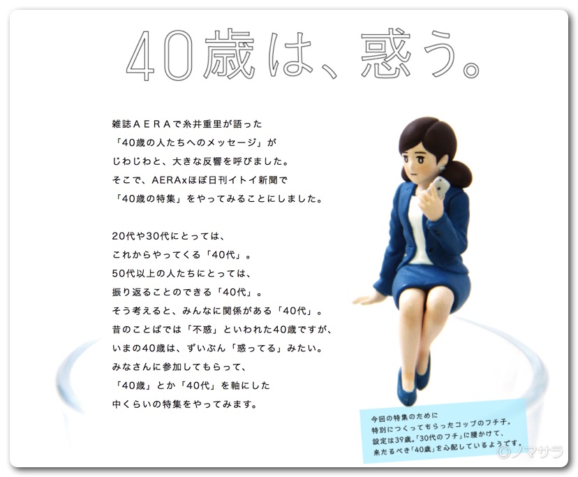 AERAとほぼ日刊イトイ新聞のコラボ企画で「40歳は惑う」という記事があったのでご紹介しておきます。