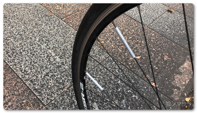 棒状の反射材に切り欠きがありスポークに当てて軽く押し込むとパチっとはまります。通常の自転車なら3本おきに配置すれば前後で9本ずつ、ちょうど18本使い切ります。