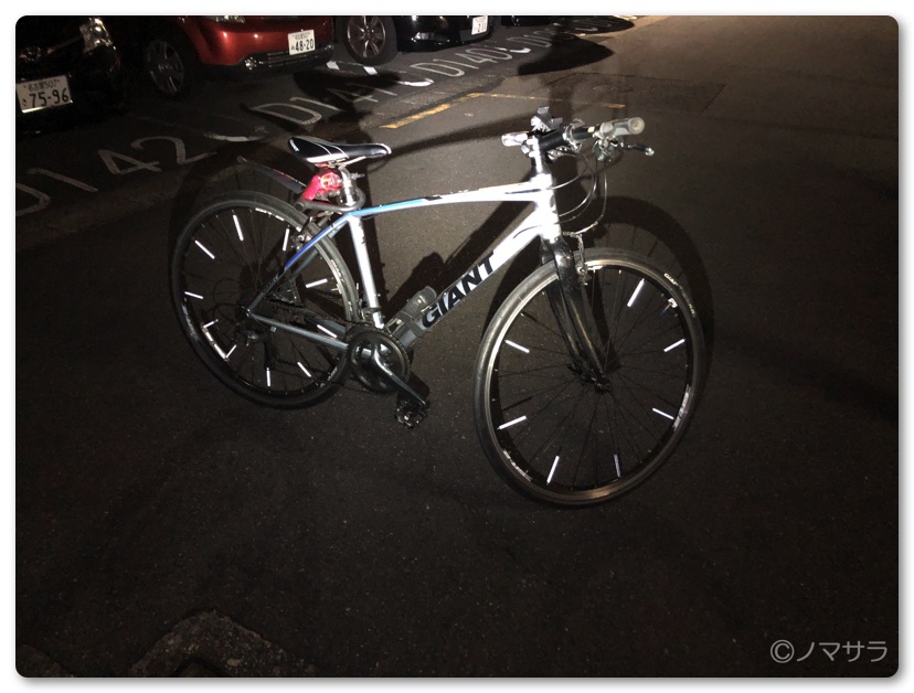 冬場は日の入りの時間も早く17時を過ぎると暗くなります。夜間に自転車に乗る際は必ず前方の白色LEDライトと後方用の赤色LEDライトを点灯させています。ただしこれらのライトは横方向からは視認しにくく暗い色の服を着ている場合などは見えにくいため横からでも確実に視認できるスポーク用リフレクターを購入しました。