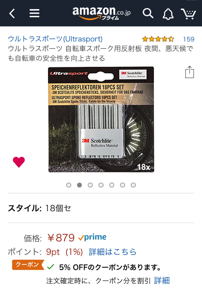 価格は現時点で879円でさらに5%クーポンが適用され、手軽に買えるお値段となっています。子どもが自転車通学していたり、自転車で塾などの習い事に通っている場合、冬場は外が暗くなることが多いと思います。事故をできる限り未然に防ぐためにもスポーク用リフレクターを取り付けてみてはいかがでしょうか。
