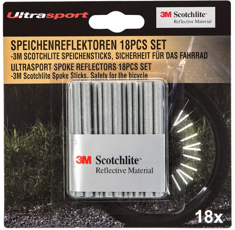 今回購入したのは「ウルトラスポーツ18本入り自転車スポーク用反射材」。3Mスコッチライトの反射材を使用しており反射輝度は折り紙付き。