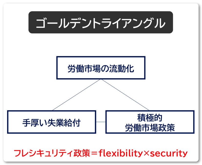 デンマークでこういった社会が実現できる背景には高税収により福祉の充実した国家であること、「労働市場の流動化」「手厚い失業給付」「積極的労働市場政策」のゴールデン・トライアングルと言われるフレキュリティ政策が行われていることが挙げられます。