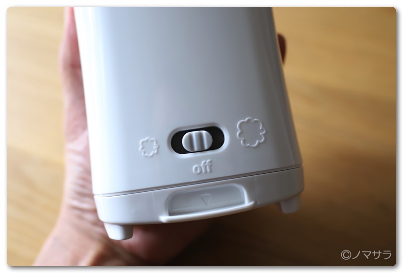 サイズは大きすぎず小さすぎず程よいサイズ。裏面にハンドソープの泡の量を選べるスイッチがあります。両方試しましたが多い方でちょうどいい感じ。電池は単3型電池4本で駆動します。エネループが利用できるので繰り返し充電して使えます。