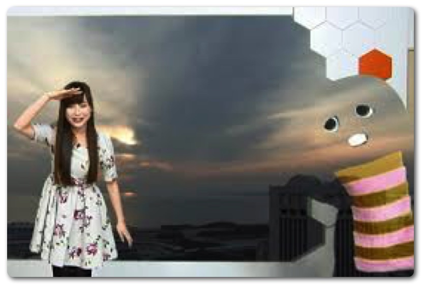 現場では実際には天気予報の映像は写っておらずグリーンのスクリーンがあるだけ。
