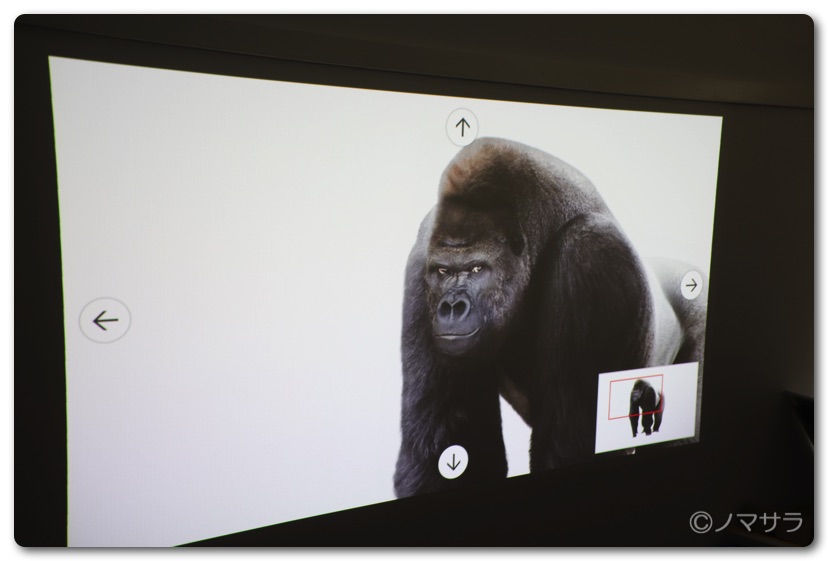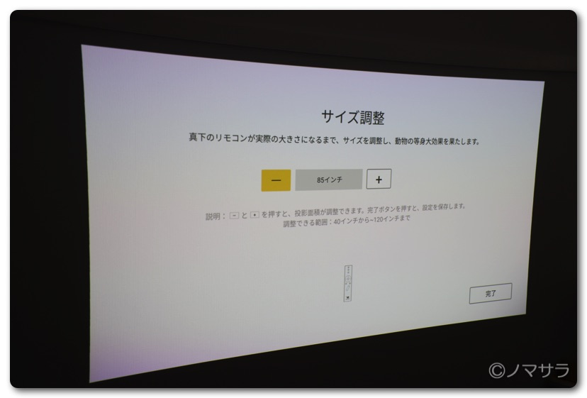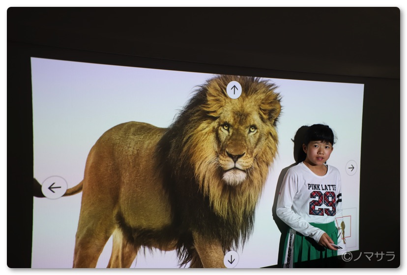 画面に映っているリモコンを実物大のサイズに縮尺を調整すると画面に等身大の動物が投影されます。