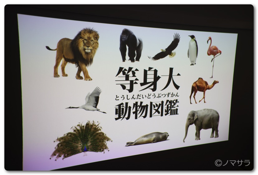 子どもが喜びそうなコンテンツとしては等身大動物図鑑があります。