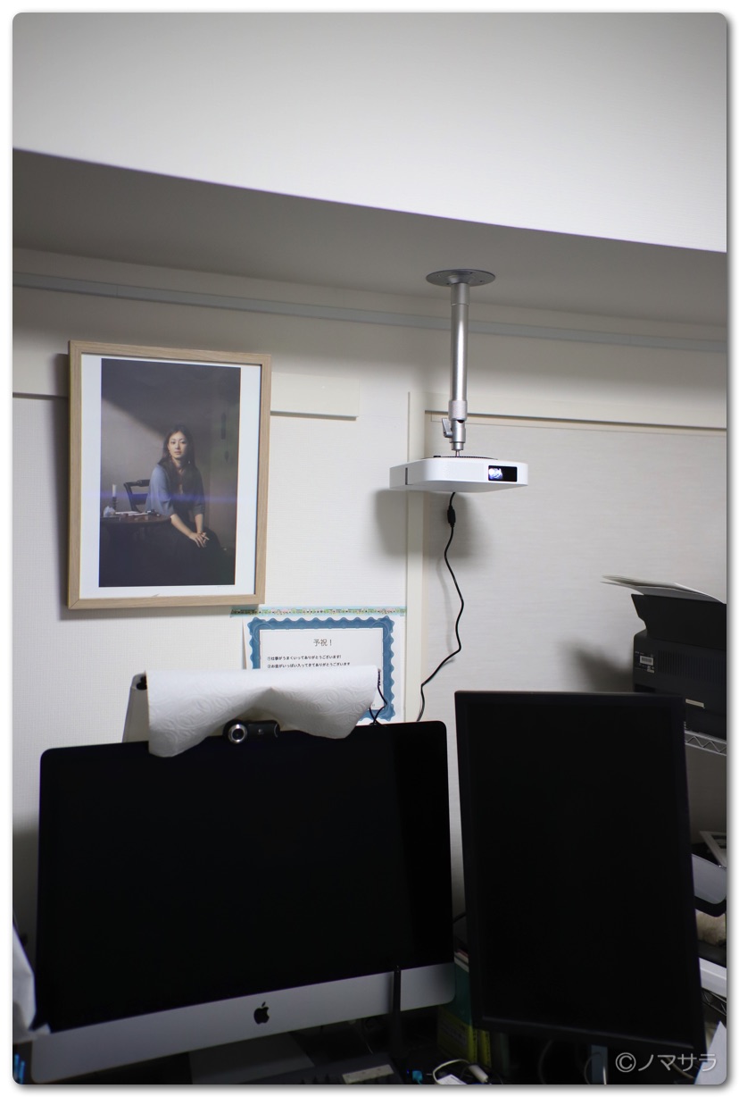 以前は専用のスクリーンを使っていましたが、今回は白い壁にそのまま投影することにしました。