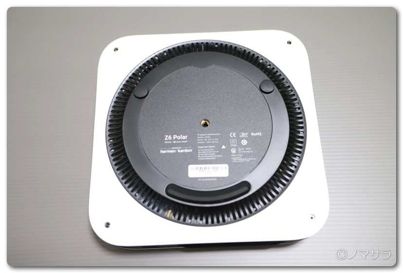 底面には三脚穴があり、そこに天吊用の器具を装着したり、三脚を立てて使ったりすることができます。