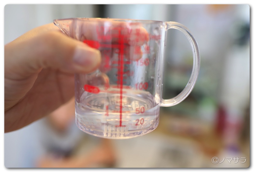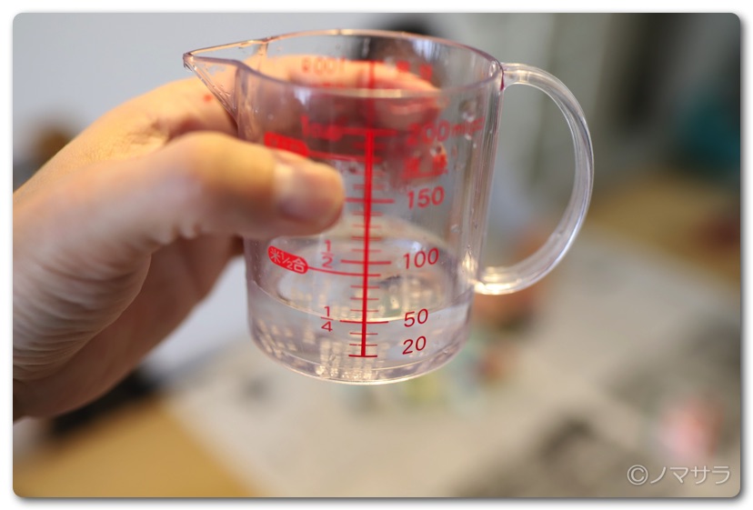 ※直接計量カップに洗濯のりを入れて計ってもいいのですが口に入るのを躊躇する方はこの方法をオススメします。