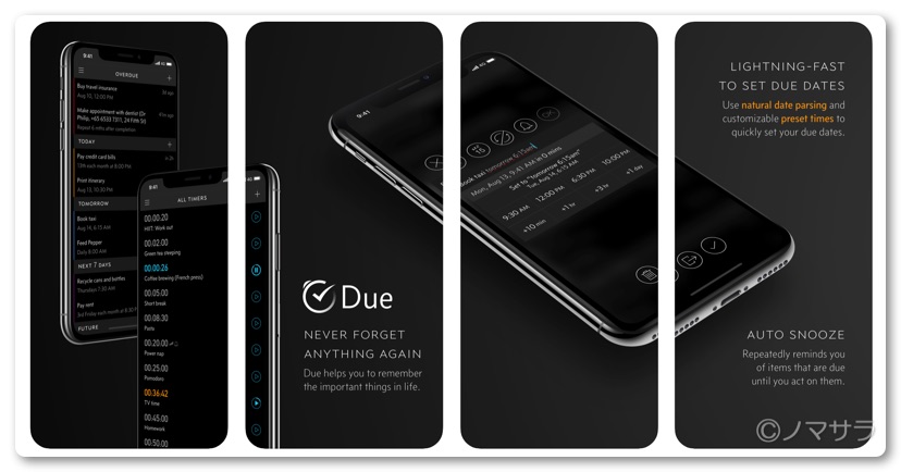 この4つを毎日実践していれば幸せな人生が送れると言われ、継続していますが個人的にはまさにその通りだと実感しています。ただし、ゼロからこれらを習慣化するのは難しいかもしれません。そこでぜひ使って欲しいのがiPhoneのアプリ「Due」。