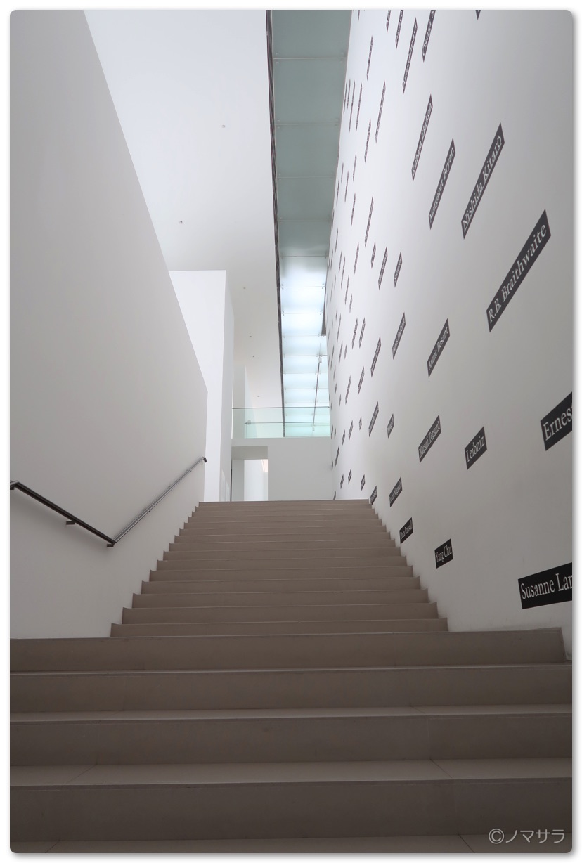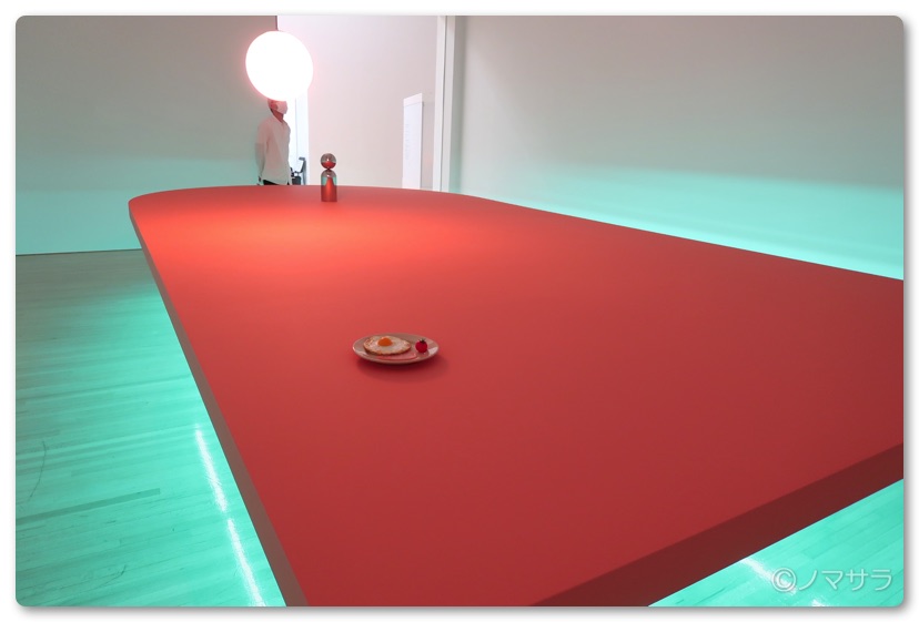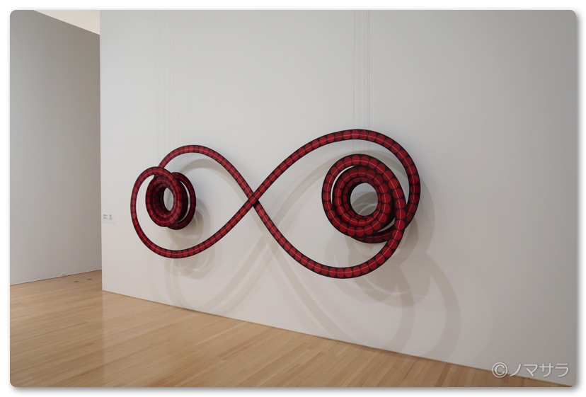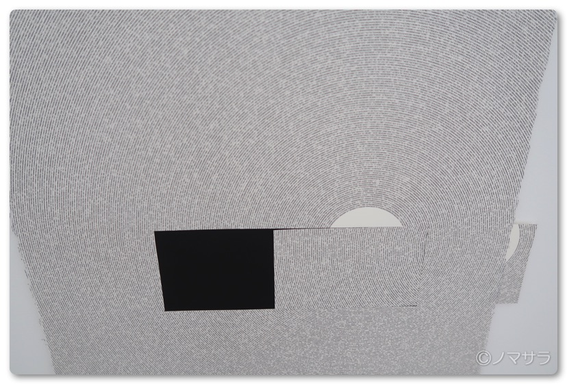 その他、真っ白な壁しかない部屋の中に小さな時計があり秒針の先にはルーペが付いていて、それを覗き込むと円周率を書いた小さな文字が見えるという凝ったインスタレーションなどがあり観るものを楽しませてくれます。