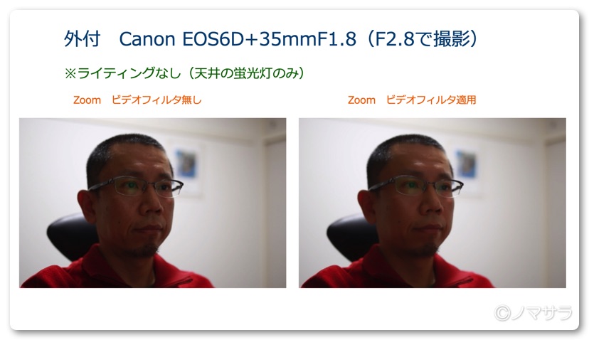 いかがだったでしょうか。インカメラとWebカメラでもかなり違いますがデジタルカメラの映像が格段に綺麗なことがおわかりいただけたかと思います。Zoomのビデオフィルタはなかなか優秀で違和感がない程度に肌の表面を滑らかに映し出してくれます。