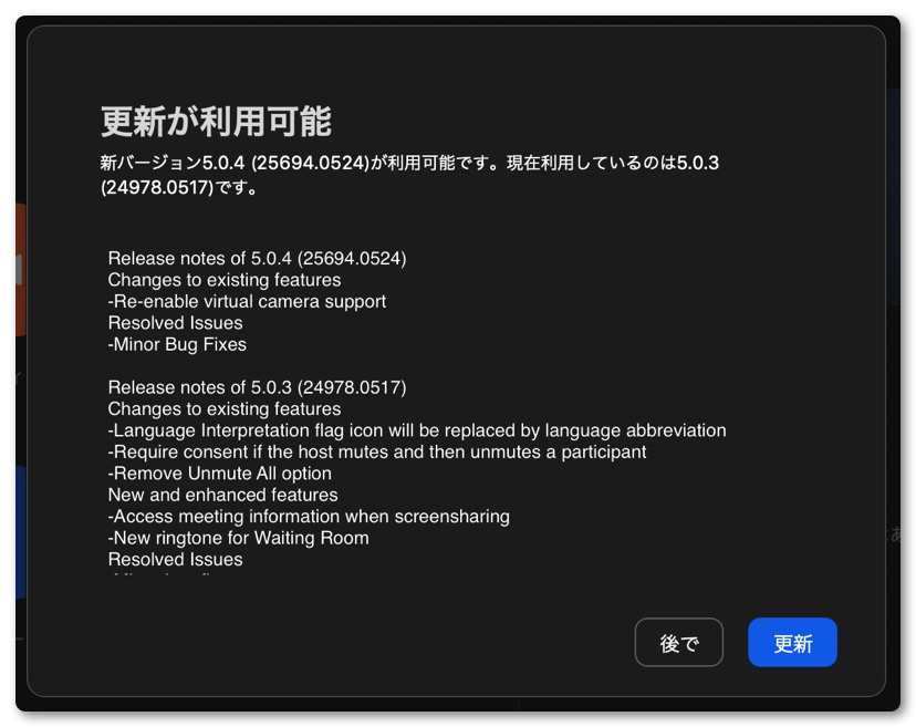 もし、仮想カメラが使えないためにバージョンアップを見送っていた方はセキュリティ面のこともありますので、すぐにアップデートしましょう。セキュリティや仮想カメラ周り以外も色々と機能が向上していますので使い勝手がさらに上がっています。
