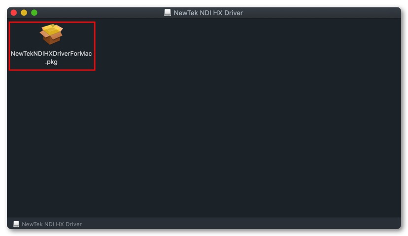 「HX driver for Mac」の中には「NewTekNDIHXDriverForMac.pkg」しかありませんのでこれをインストール。