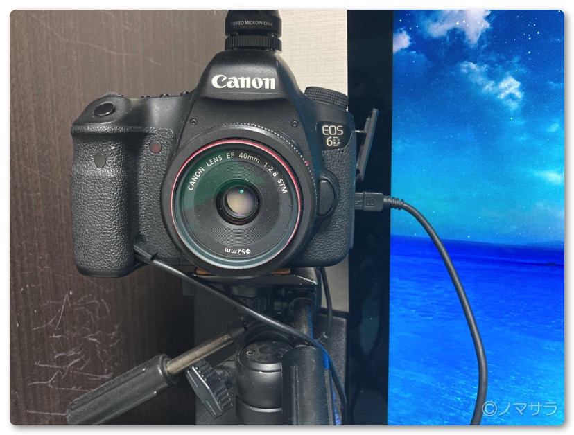 何事にもこだわって凝るタイプなので、自分自身の映像の画質にも色々こだわり試行錯誤した結果、現時点ではEOS6DをUSBケーブルで繋ぎ、「EOS Webcam Utility」というサービスを使って接続しています。これを使えばキャプチャーボードなどは必要ありません。Macでもそのまま使えます。画質も良好。